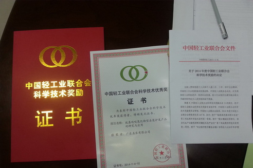 4月2日,中國(guó)輕工業(yè)聯(lián)合會(huì)在石家莊舉行2014年度中國(guó)輕工業(yè)聯(lián)合會(huì)科學(xué)技術(shù)獎(jiǎng)?lì)C獎(jiǎng)儀式。