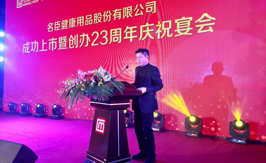 12月21日晚,名臣健康用品股份有限公司在公司總部隆重舉行“名臣健康首次公開發行A股上市暨創辦23周年慶祝酒會”。