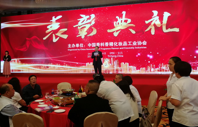 為表彰行業優秀企業為香化行業的健康發展做出的卓越貢獻,本次年會本著“公開、公正、科學、不收費”的原則,通過會員單位自愿申報,協會秘書處集體研究,綜合平衡,提出推薦名單,并經評委采用不記名投票方式嚴格認真評選和公式程序,評出了“中國香料香精化妝品行業優秀企業”、“中國香料香精化妝品行業管理創新獎”、“中國香料香精化妝品行業綠色環保獎”、“中國香料香精化妝品行業社會責任獎”、“中國香料香精化妝品行業最具影響力原料供應商”、“中國香料香精化妝品行業最具影響力關聯企業”、“中國香料香精化妝品行業改革開放40年特別獎”等獎項的獲獎單位,并在頒獎晚會上頒獎。