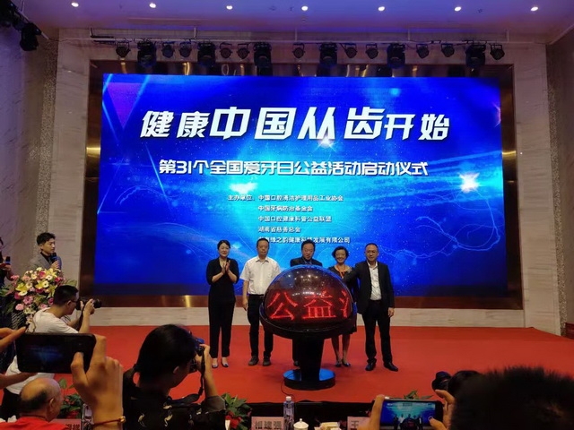 為提高群眾口腔健康意識,營造有利于口腔健康的良好社會氛圍,9月20日,由中國口腔清潔護理用品工業(yè)協(xié)會、中國牙病防治基金會、中國口腔健康科普公益聯(lián)盟、湖南省慈善總會、湖南綠之韻健康科技發(fā)展有限公司及中國口腔健康科普公益聯(lián)盟成員單位共同主辦的“健康中國?從齒開始——第31個全國愛牙日公益活動啟動儀式”在湖南長沙隆重舉行。