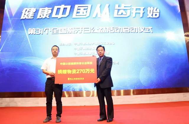 本次愛牙日公益活動,中國口腔健康科普公益聯(lián)盟單位共向湖南省慈善總會捐贈價值270萬元的口腔護理用品。