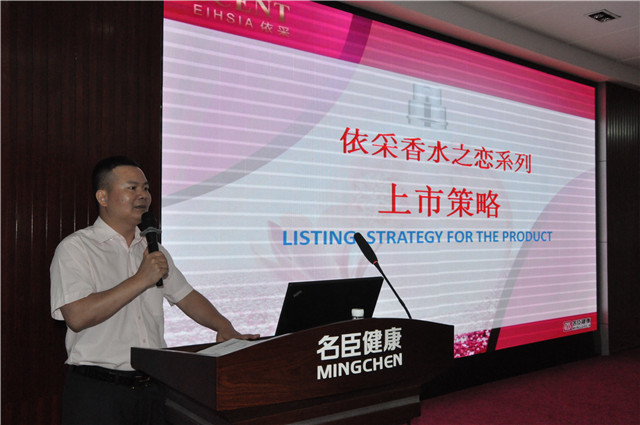 公司事業(yè)三部銷售總監(jiān)陳沛杰在新品發(fā)布會(huì)上作《依采香水之戀系列上市策略》