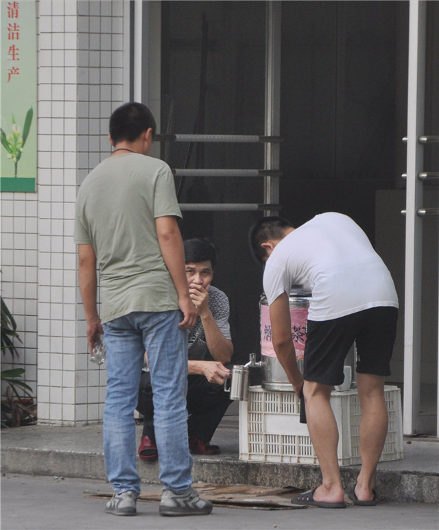 據(jù)每天負(fù)責(zé)煮涼茶的保安隊(duì)副隊(duì)長老黃介紹,對夏季為員工提供解暑茶這事情,公司老板一直很重視,親自過問,親自布置,甚至要求要到指定的老藥鋪去買 “竹殼茶”才正宗,強(qiáng)調(diào)要把茶水供應(yīng)點(diǎn)設(shè)到生產(chǎn)一線,滿足生產(chǎn)作業(yè),尤其是戶外作業(yè)員工的飲用需要,一定要滿足供應(yīng)。