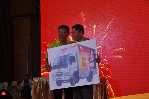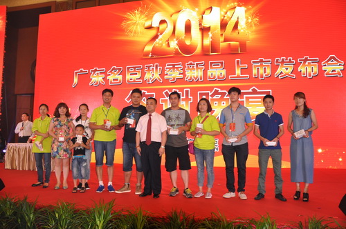 晚宴上,華光滿溢,在答謝晚宴中,不僅有康康舞、草裙舞、本山傳媒簽約藝人的精彩二人轉(zhuǎn)、搖滾歌手、美王品牌代言人星光大道年度總冠軍玖月奇跡等演藝界明星獻上的精彩節(jié)目,抽獎環(huán)節(jié),熱門的小米手機,iPad mini,iPhone5S等豐厚大獎有序推出,陸續(xù)揭曉,近百位嘉賓喜獲幸運大獎,滿載而歸,更將晚會推向高潮,而特等獎東風(fēng)霸王小汽車的落定,更是向到場嘉賓展示了一個真實又豐富多彩的名臣,名臣股份總經(jīng)理陳勤發(fā)及傳統(tǒng)渠道營銷中心總監(jiān)程紅垓為中獎代理商頒發(fā)了大獎。
