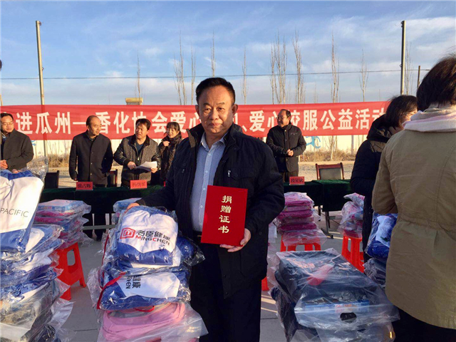 11月16日,名臣健康用品股份有限公司派出代表不遠千里,隨中國香化協會走進西北戈壁,來到甘肅河西走廊西端,古絲綢之路的商賈重鎮瓜州,參加由中國香精香料化妝品工業協會發起組織的愛心公益活動,為山區孩子捐贈愛心書包、校服和文具,傳遞名臣人拳拳愛心。
