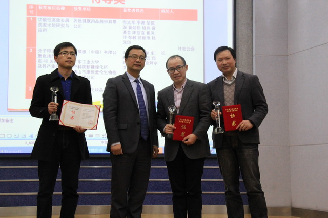 廣東省化妝品學會會長杜志云教授為特等獎團隊代表頒獎
